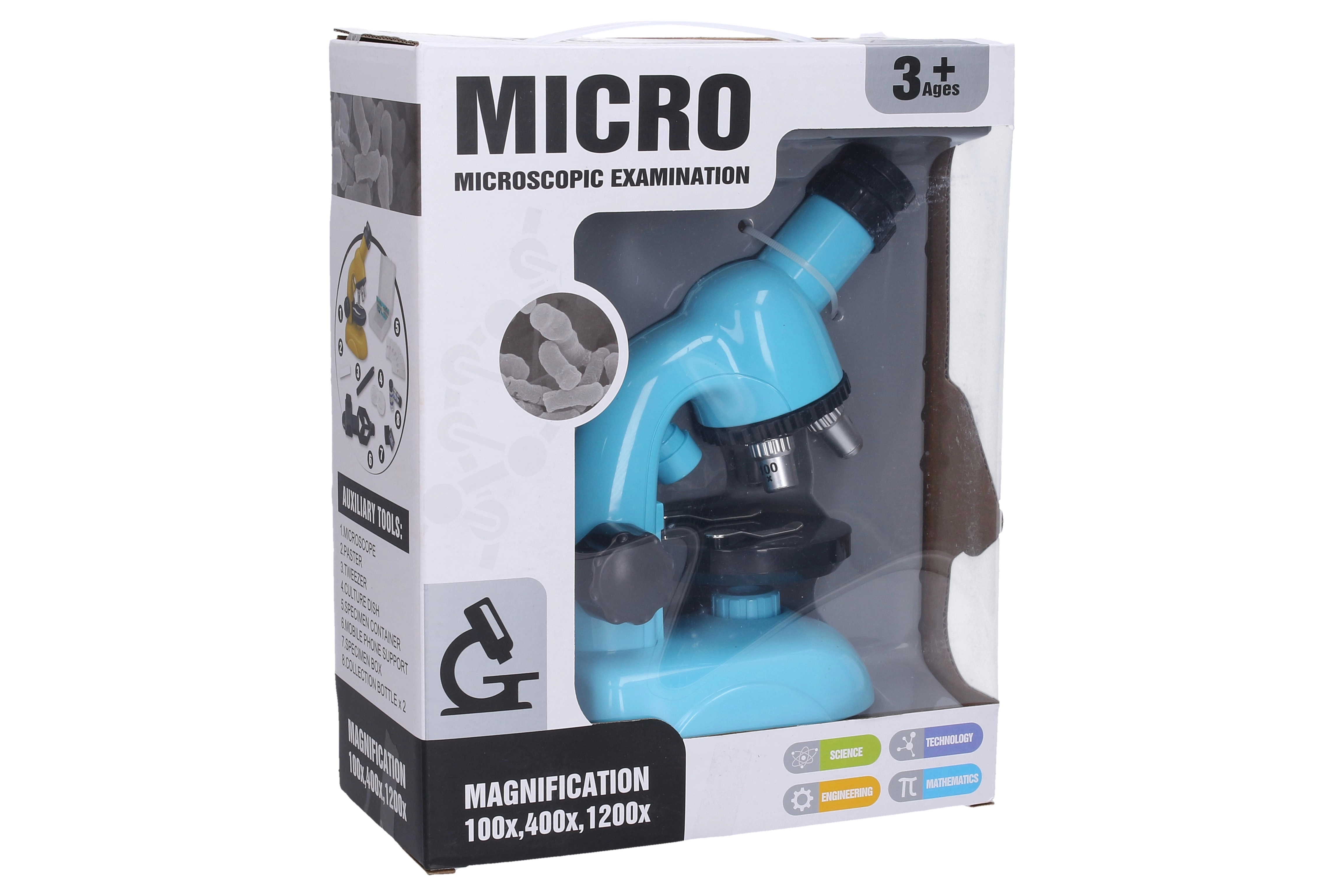 Открийте света на микроскопията с този компактен микроскоп с размер 21 см, който предлага увеличение 10×, 400× и 1200×. В комплекта е включен държач за мобилен телефон за заснемане на увеличени проби, комплект предметни стъкла и основни аксесоари за първи опити. Захранването се осигурява от 2× AA батерии (не са включени).