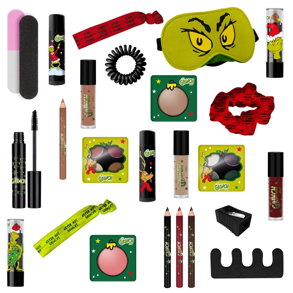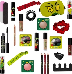 Този игрив адвент календар, вдъхновен от персонажа GRINCH, крие 24 прозорчета, пълни с козметика и аксесоари. Създавайте всеки ден различен грим – от естествен до ефектни празнични визии. Благодарение на разнообразния избор от продукти ще оформите вежди, очи, устни и нокти и ще ги допълните с практични помощници за ежедневна грижа.