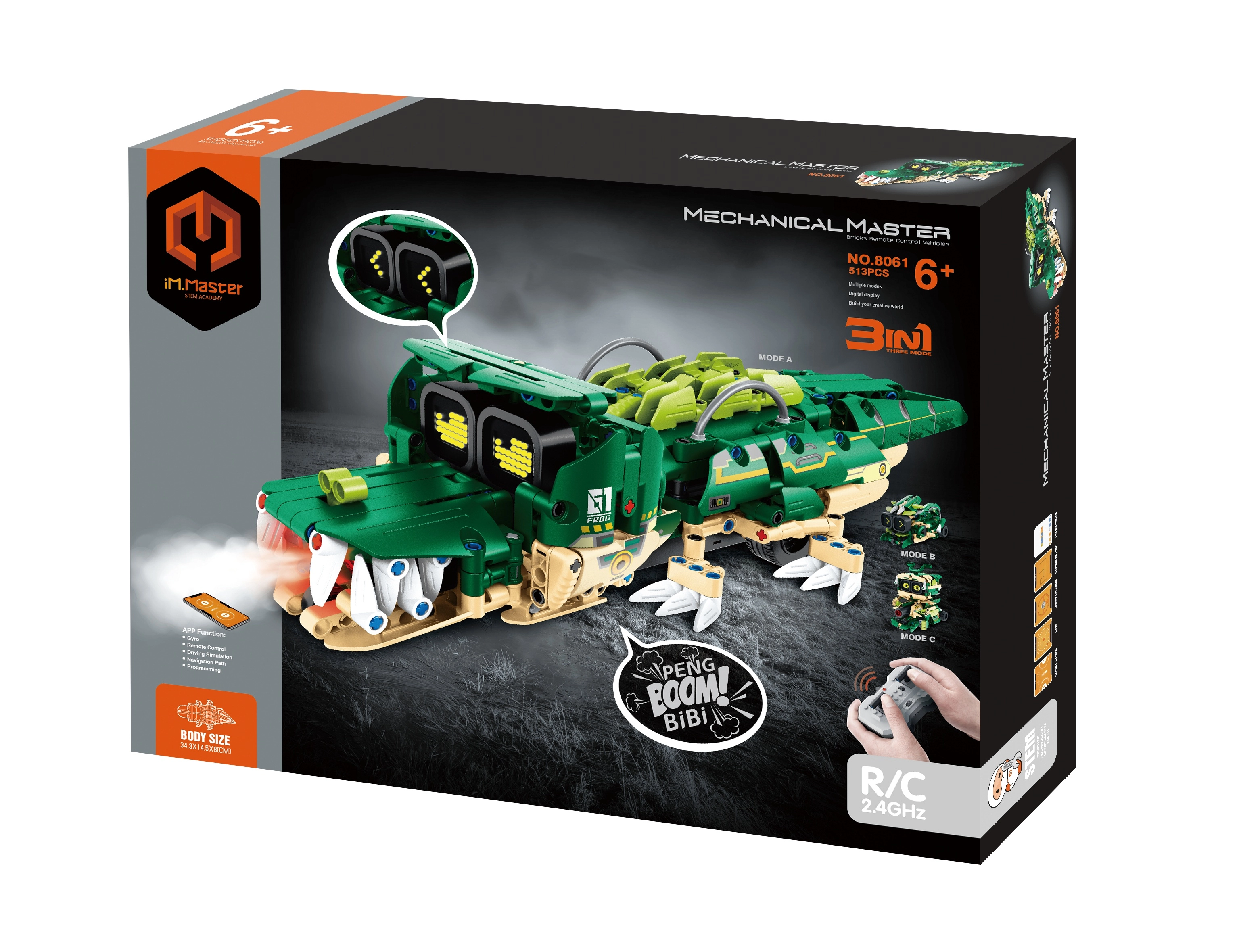 Сглобете забавен робот във форма на крокодил и се насладете на умна игра с технология. Този комплект 3-в-1 предлага множество варианти за сглобяване, дистанционно управление за лесно ръководене и атрактивни светлинни ефекти. Идеален за малки и големи почитатели на роботиката и STEM обучението.