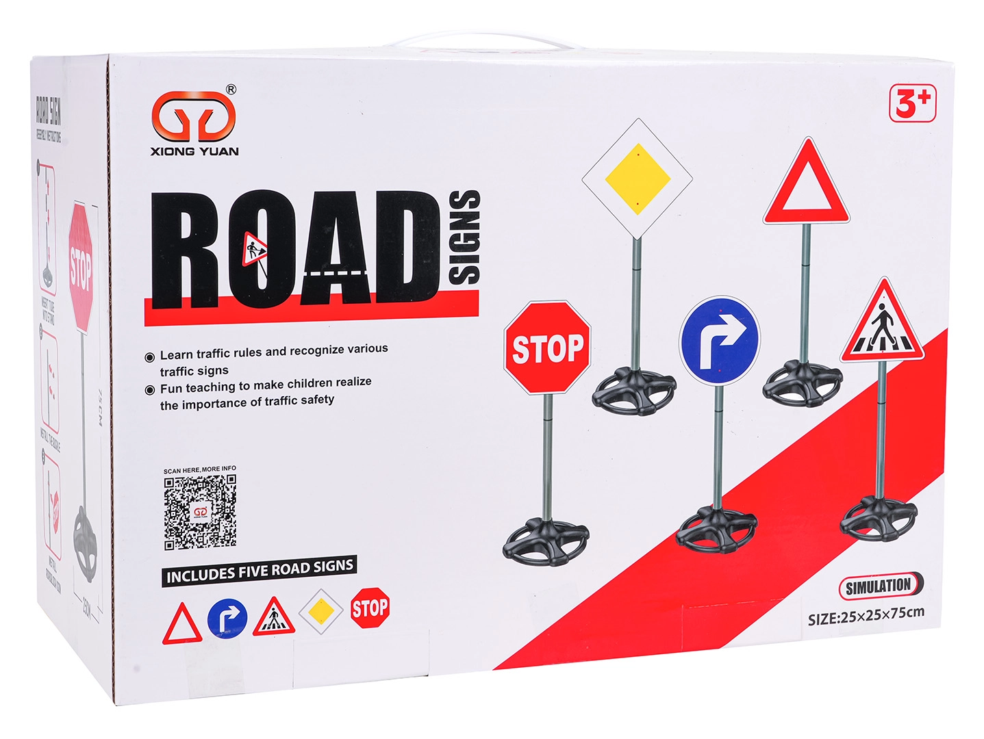 Открийте забавен и образователен комплект за малки шофьори: пет големи пътни знака със стабилни основи за игра и обучение. Идеален за дома, детски градини и игрални кътове. Комплектът е изработен от безопасни, висококачествени материали, помага за усвояване на правилата за движение по пътищата и благодарение на стабилните основи издържа и на по-активна игра.