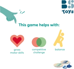 Подпомага естественото развитие на координацията на тялото и подобрява контрола на движенията. Благодарение на лесните правила е готова за игра за миг и е забавна за деца и възрастни.