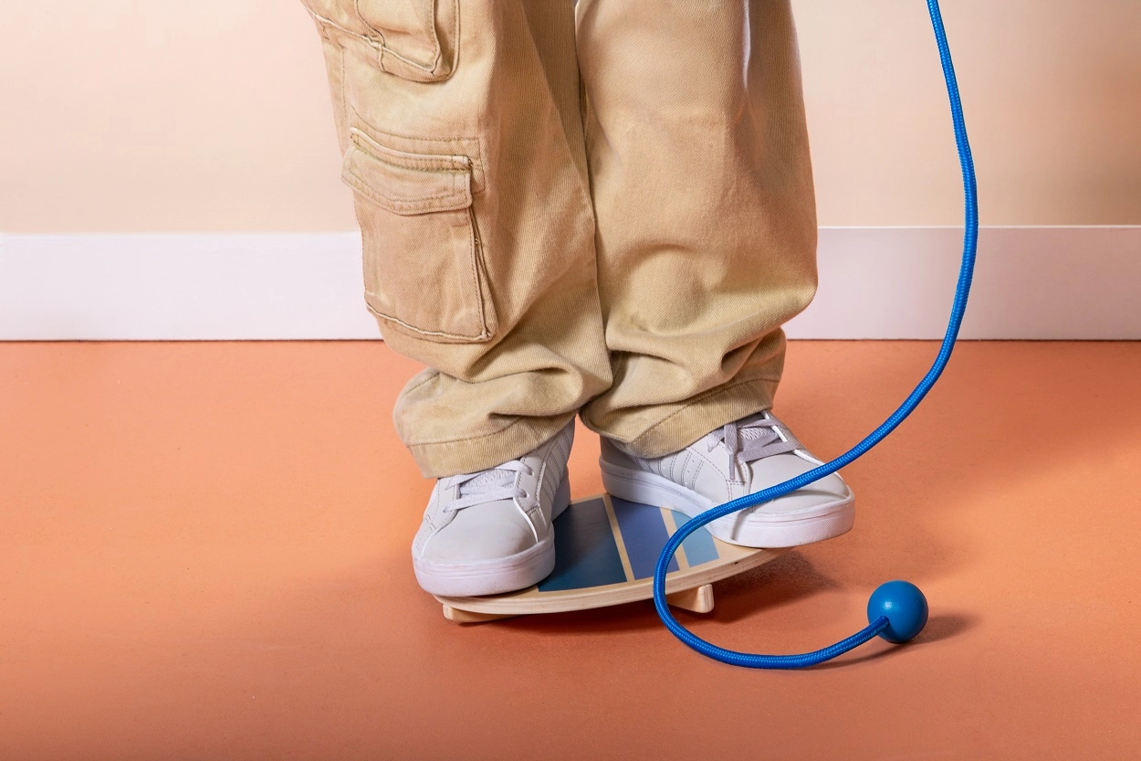 Тази проста и увлекателна игра съчетава баланс и съперничество. Всеки играч стои на своята балансираща дъска и държи общото въже. Целта е с внимателно дърпане да подтикнете противника да загуби стабилност и да слезе от дъската. Играта е идеална за игрална стая, двор или детска градина.