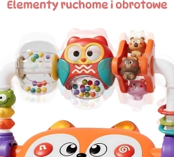 - въртяща се сова с дрънкалки, фигурки на животни, цветни рингчета/топченца