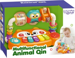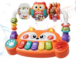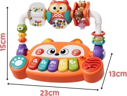 Търсите играчка, която едновременно забавлява бебето и подпомага неговото развитие още от първите месеци? Интерактивното пиано на Woopie във форма на сладка лисичка съчетава музика, светлина, цветове и движение. Предлага 5 музикални клавиша (До, Ре, Ми, Фа, Сол), LED светлинни ефекти, синхронизирани със звуците, и въртящи се елементи с дрънкалки за сензорна стимулация. Благодарение на безопасната конструкция от нетоксични материали и лесните за натискане бутони е идеално за малки ръчички и подкрепя сетивното, музикалното и когнитивното развитие.