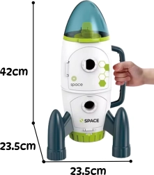 Ракетата е изработена от здрав и безопасен ABS пластмаса и има удобна дръжка за лесно пренасяне. Отварящият се кокпит и вратите осигуряват достъп до командната зала и долния хангар, така че децата да създават собствени сценарии и да развиват креативност, координация ръка–око и моторика. Играчката е подходяща за детска стая, детска градина и за път.