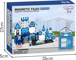 Постройте своя собствена полицейска станция с креативния магнитен конструктор WOOPIE. Благодарение на силните магнити частите се свързват здраво и позволяват стабилни конструкции. Богатият комплект с фигурки на полицаи, патрулна кола, хеликоптер, мотоциклет, полицейско куче и пътни знаци носи часове забавление и развива креативността, логическото мислене и фината моторика на деца от 3 години.