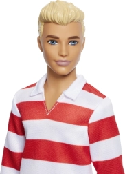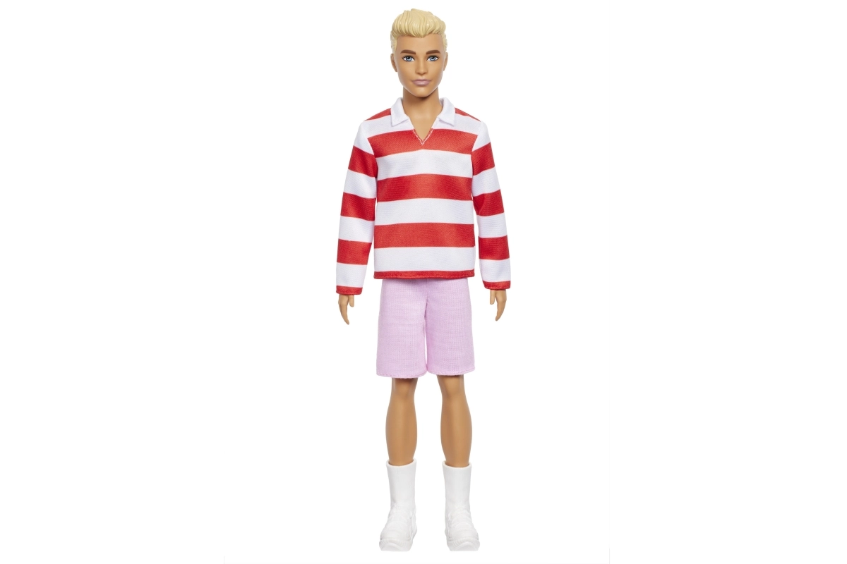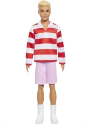 Стилен куклен герой Barbie Ken Model с топ на червено-бели райета и розови шорти носи модерен външен вид, подвижни стави и безкрайни възможности за игра и стилизиране. Страхотен подарък за деца от 3 години, които обичат модата и разказването на истории.