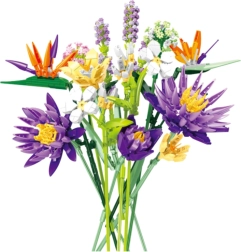 Превърнете дома си в кътче тропически рай. С този комплект ще сглобите екзотичен цветен букет изпълнен с наситени цветове – лилаво, оранжево, бяло и зелено. Грижливо проектираните елементи правдоподобно имитират структурата на цветовете и листата, така че готовата композиция изглежда естествена и елегантна.