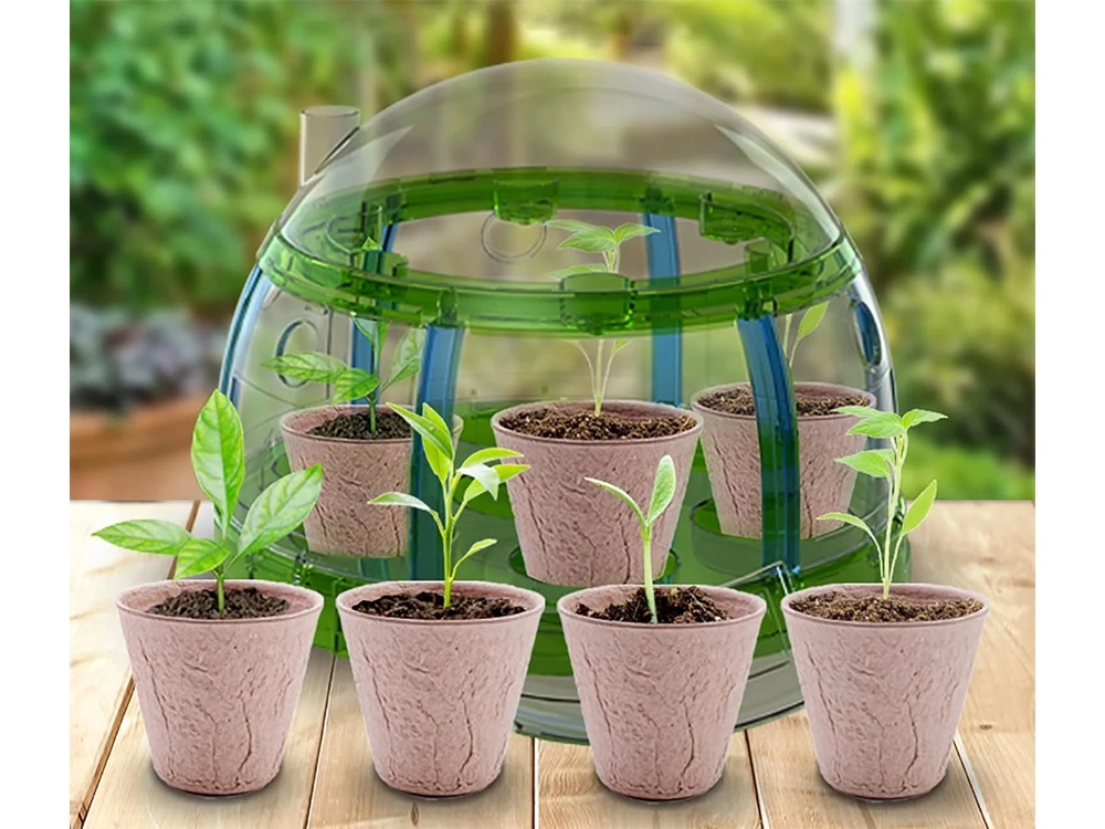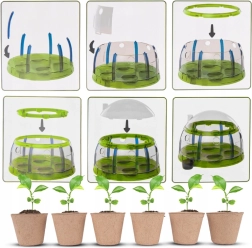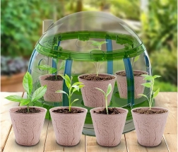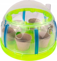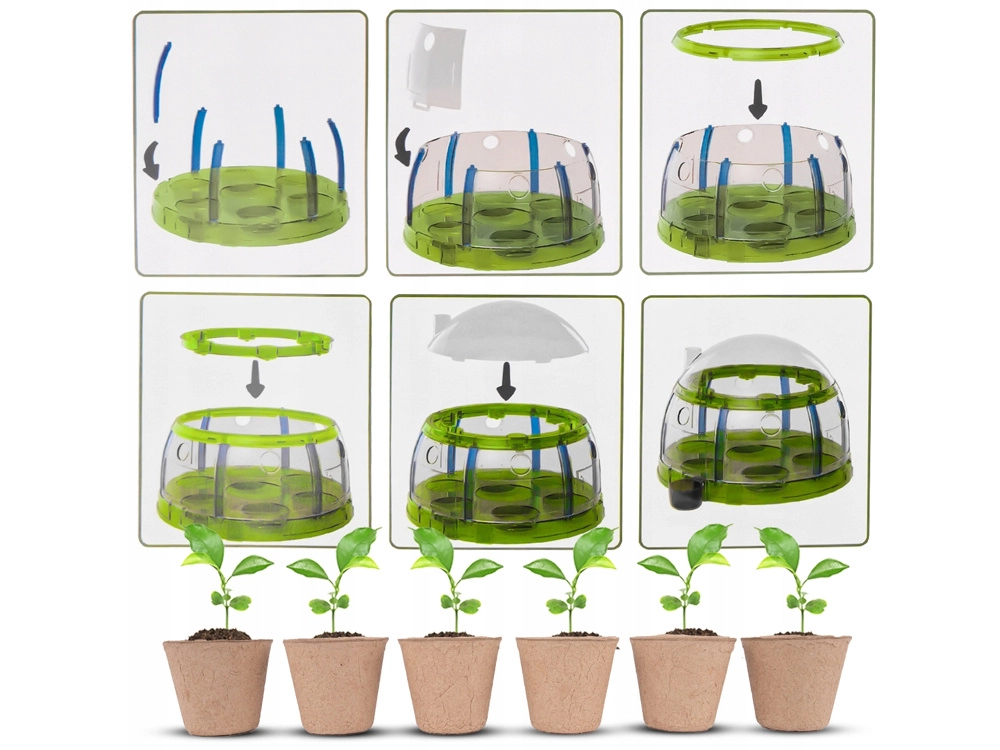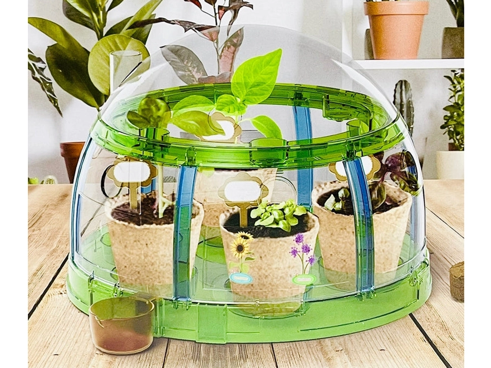 Създайте у дома малка градинка и наблюдавайте растежа – от семенце до зряло растение. Декоративната мини оранжерия с отварящ се покрив и вратички към всяка саксийка осигурява идеални условия за покълване. Биоразградимите саксийки можете да пресадите директно в почвата – щадящо за природата и без излишен безпорядък.