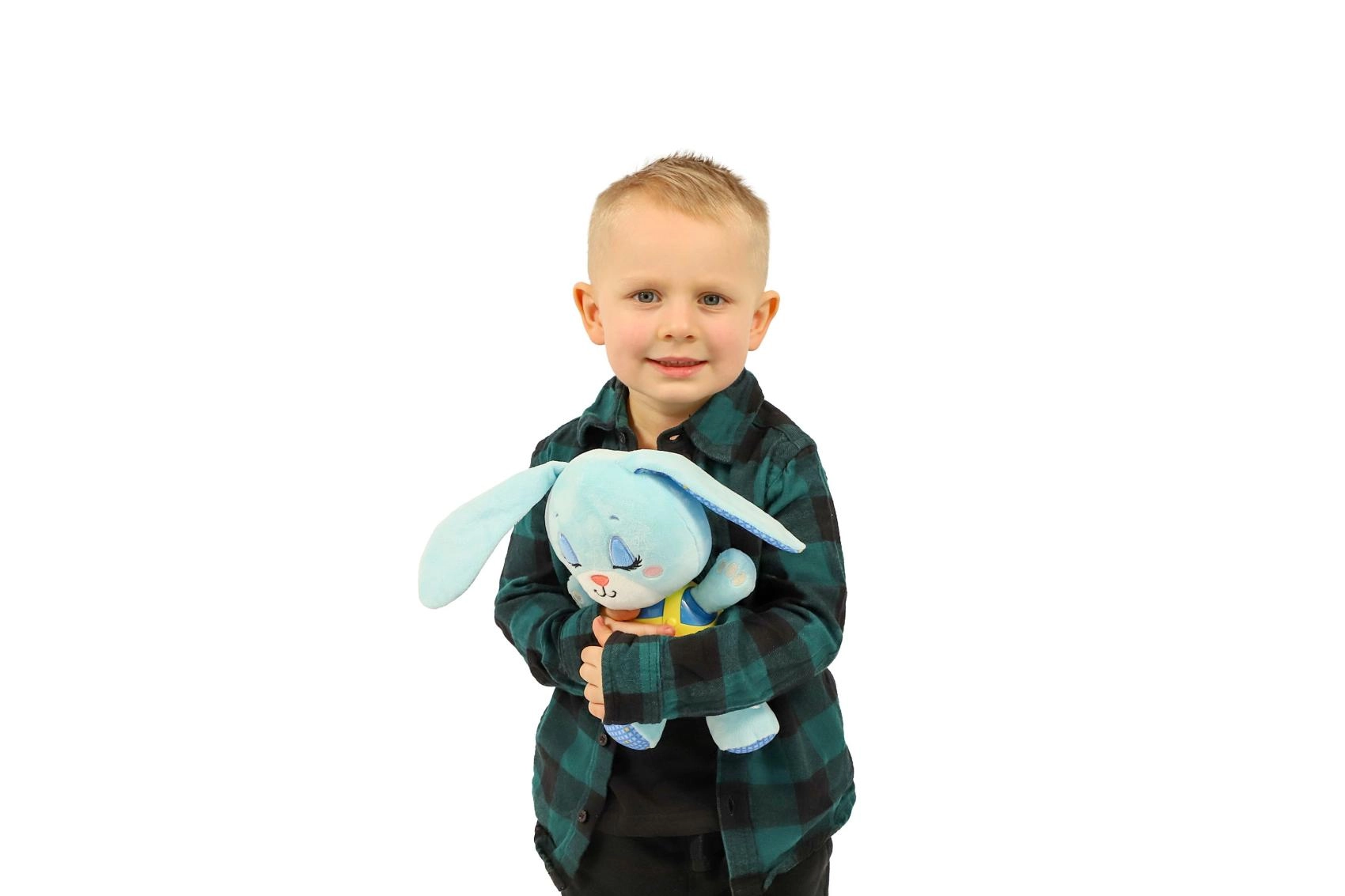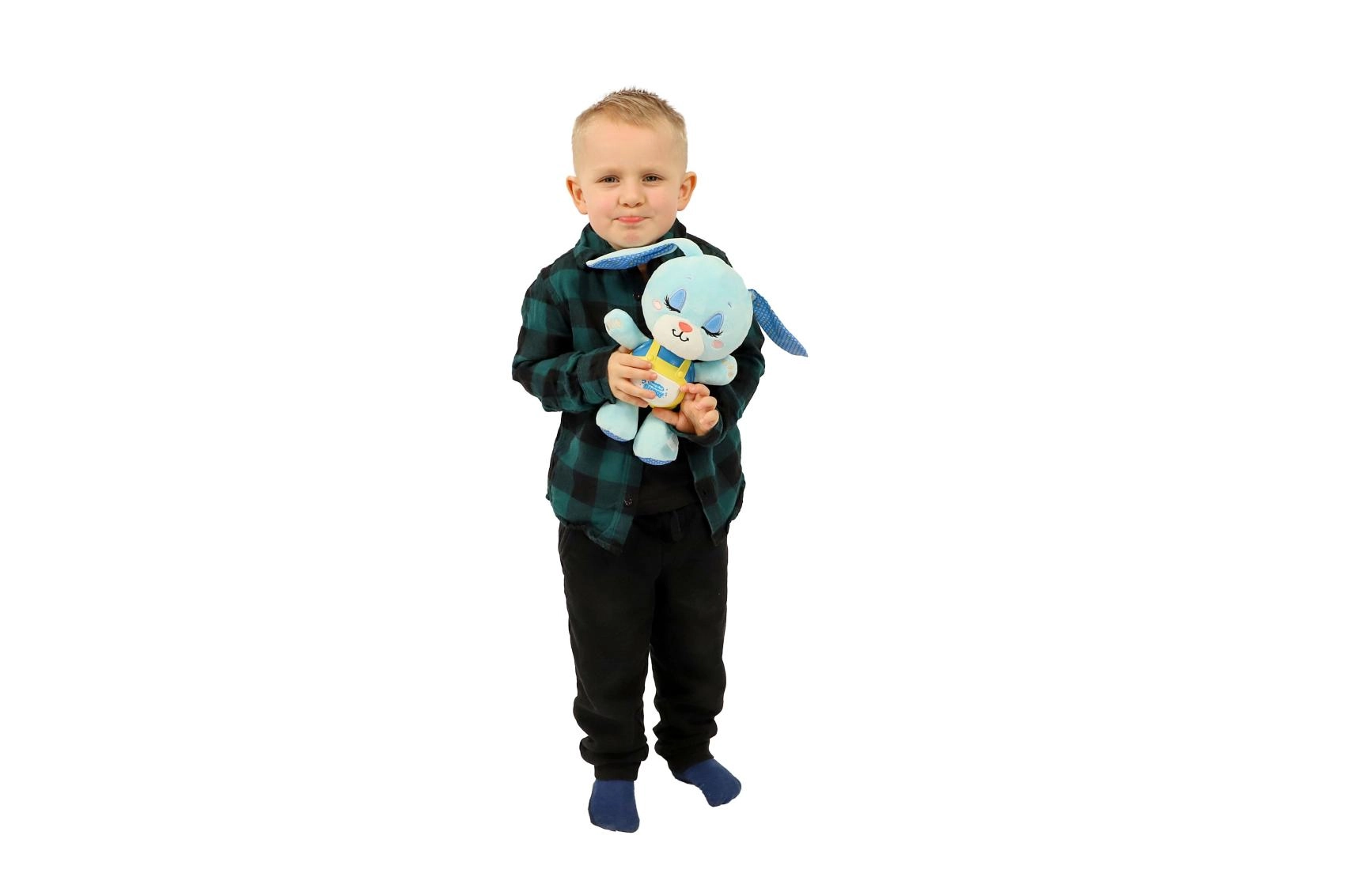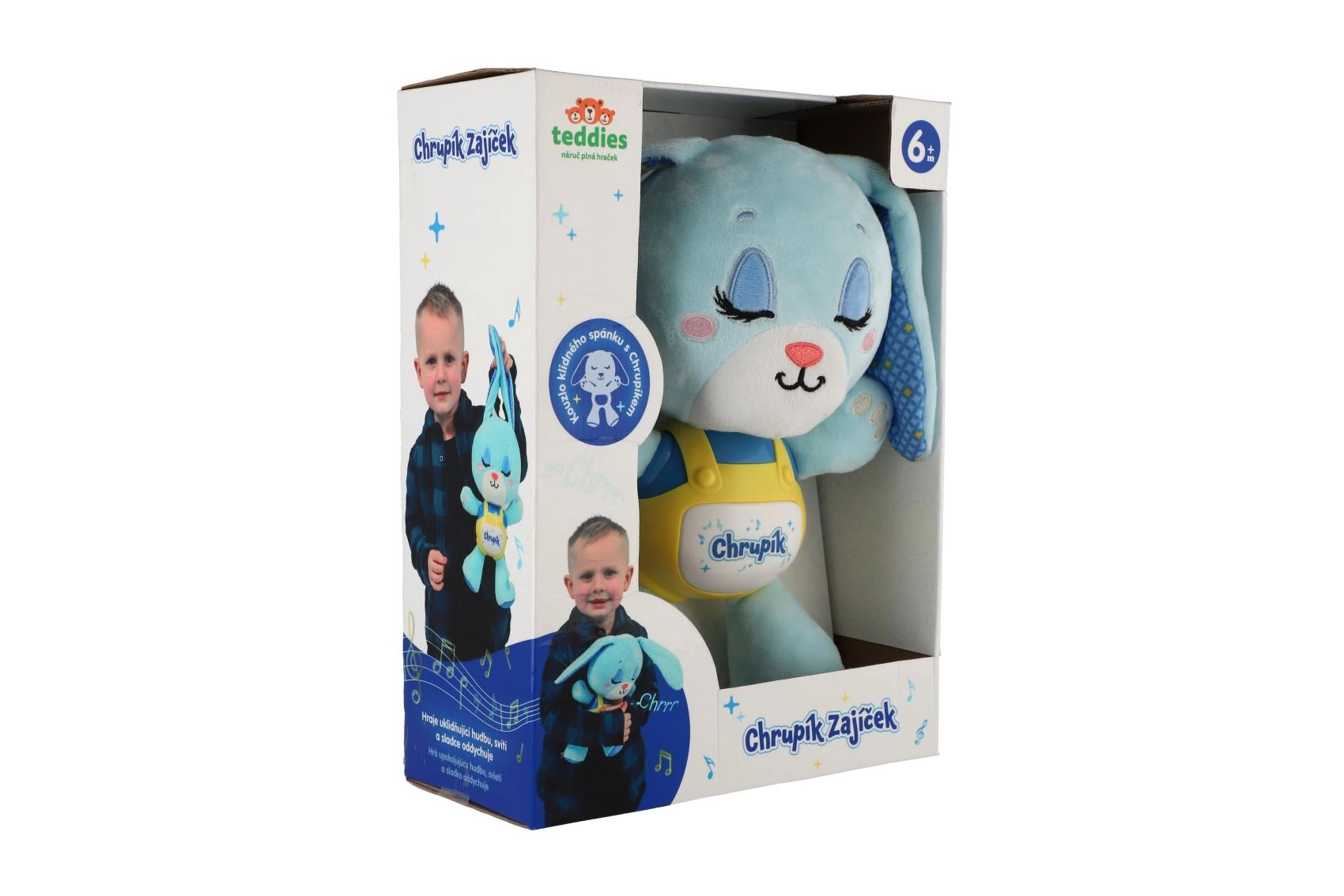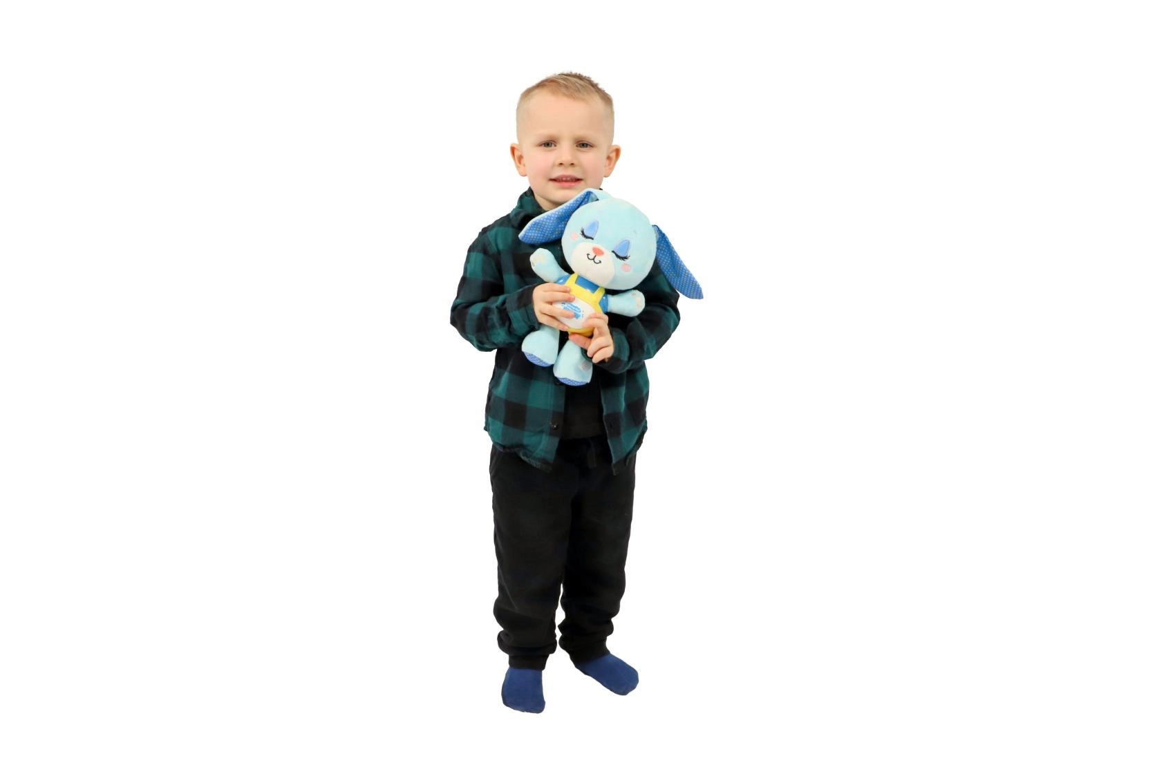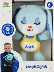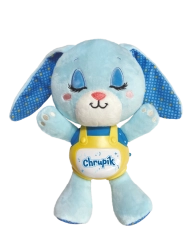 Зайчето Хрупик превръща вечерните ритуали в приятен, безопасен и успокояващ преживяванe. Мекият плюш кани към гушкане, докато нежната светлина и мелодичният съпровод създават спокойна атмосфера за лесно заспиване. Благодарение на захранването с батерии играчката може да се използва навсякъде – у дома и по време на път.