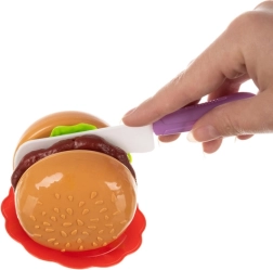Този голям сет за бързо хранене ще зарадва малките готвачи с реалистични детайли: пица със сух цип, бургер с „съставки“, хотдогове, пържени картофи, десерти и напитки. Децата могат да приготвят собствено меню, да разпределят пицата и да сервират в чинии – всичко без остри ръбове и от нетоксични материали.