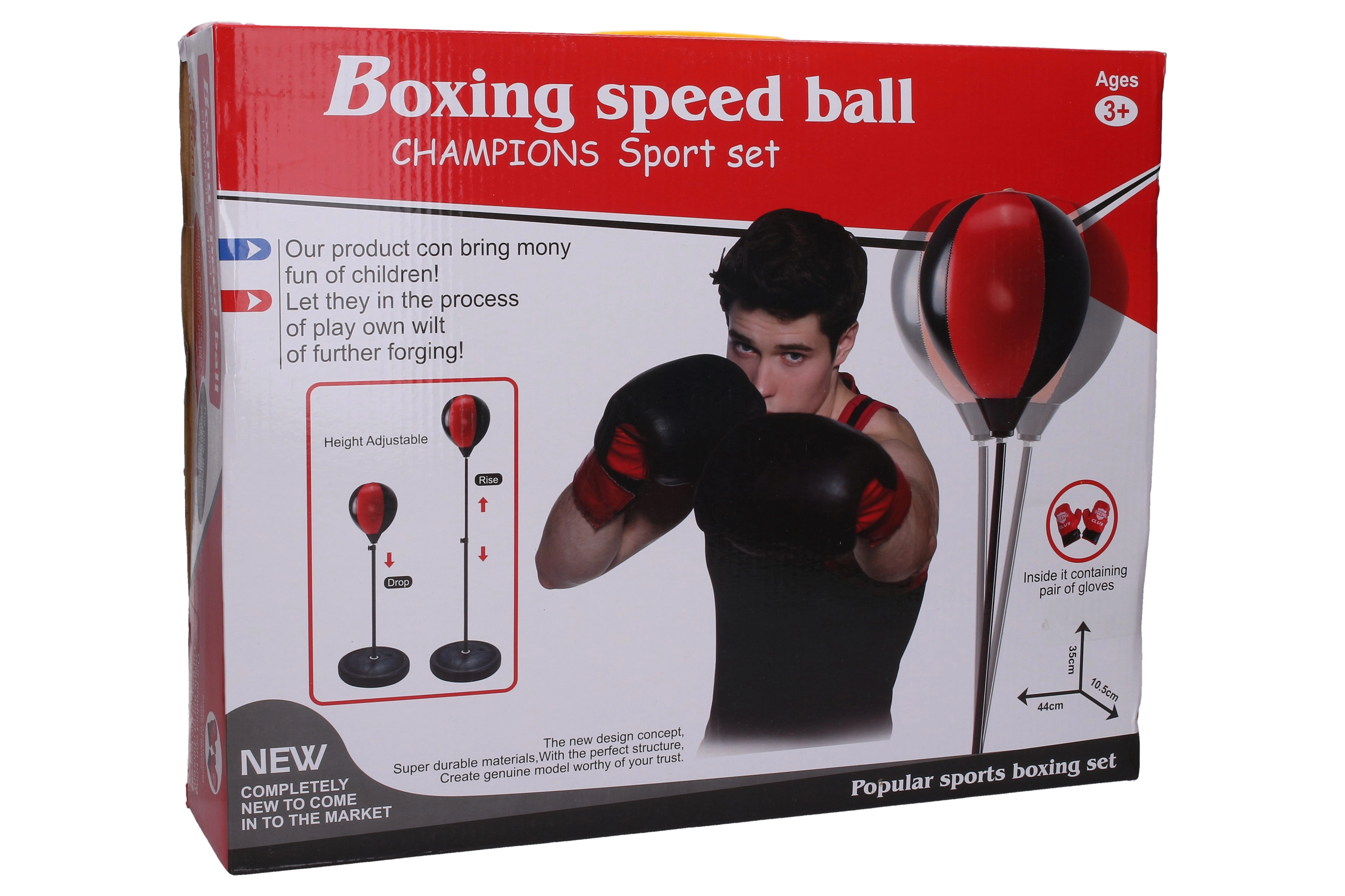 Този практичен боксов комплект е перфектен избор за домашни упражнения, развитие на скорост, прецизност и координация. Благодарение на регулируемата височина 69–109 см лесно се приспособява за деца и възрастни. В комплекта са включени боксови ръкавици, пълен монтажен комплект и помпичка за бърза подготовка за употреба.