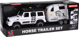 - Комплект играчки: офроуд автомобил + ремарке за коне + фигурка на кон