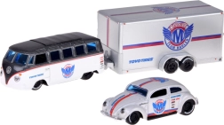 Открийте вечния дизайн на класическите автомобили в прецизната изработка на марката Maisto. Комплектът в елегантна бяло‑сребърна комбинация предлага метални каросерии, пластмасови шасита за лекота и плавно движение по различни повърхности благодарение на гумените колела. Beetle се побира удобно на включеното ремарке, така че да се насладите както на автентичен транспорт, така и на впечатляваща експозиция в колекцията.