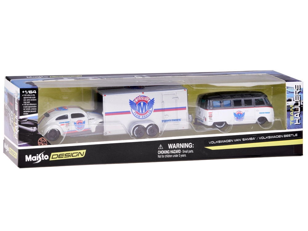 Volkswagen Van Samba е оборудван с теглична кука за прикачване на ремаркето; куката може при нужда да се демонтира, а ремаркето да се откачи без развиване. Целият комплект е идеален за почитатели на класическите автомобили, колекционери в мащаб 1:64 и деца, които обичат креативната игра.