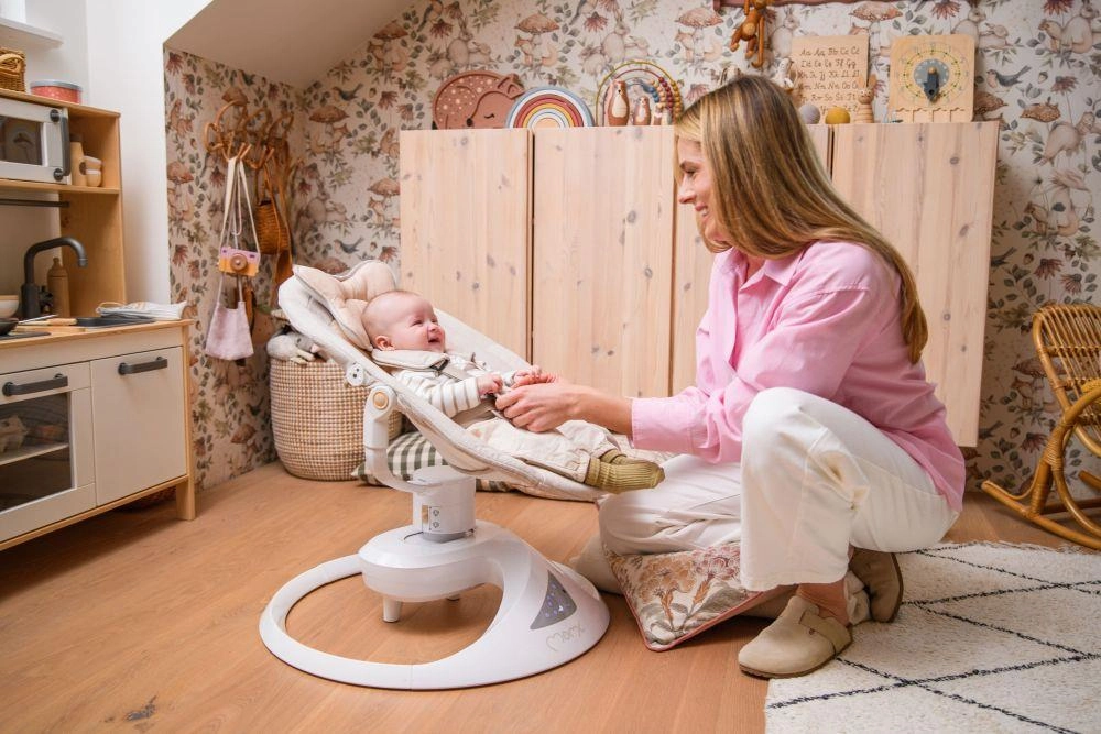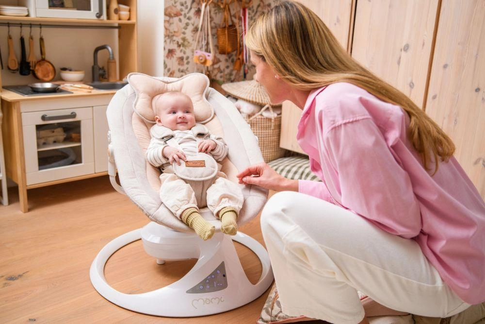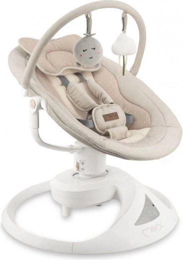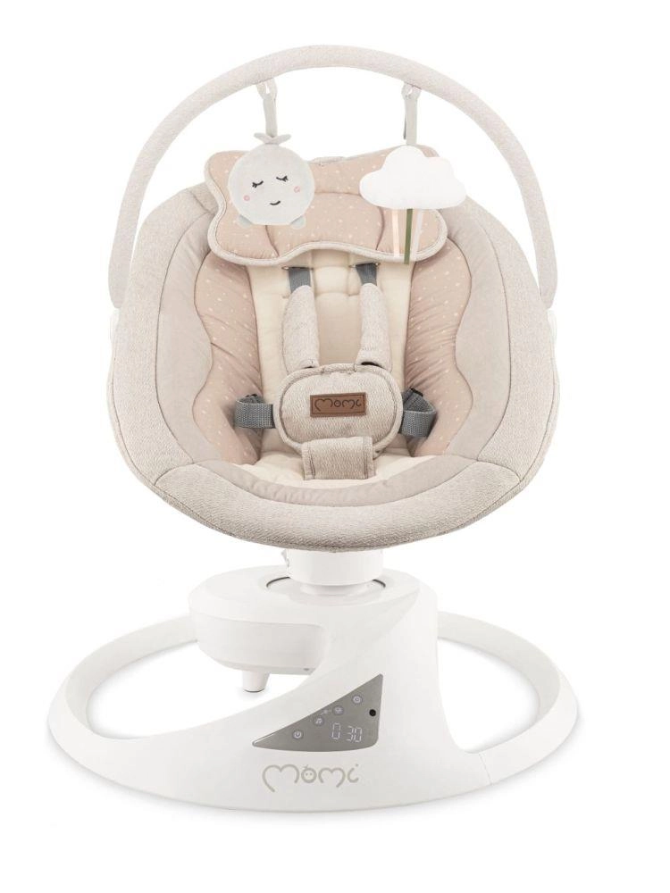 Премиум електрическата люлка MoMi PEARL предлага 2 режима на люлеене (от страна на страна и нежен въртящ се ход), въртяща се седалка на 360°, 5 скорости, таймер и Bluetooth за възпроизвеждане на музика. Удобно, безопасно и стилно решение за успокояване и забавление на бебето от раждането до 9 кг.