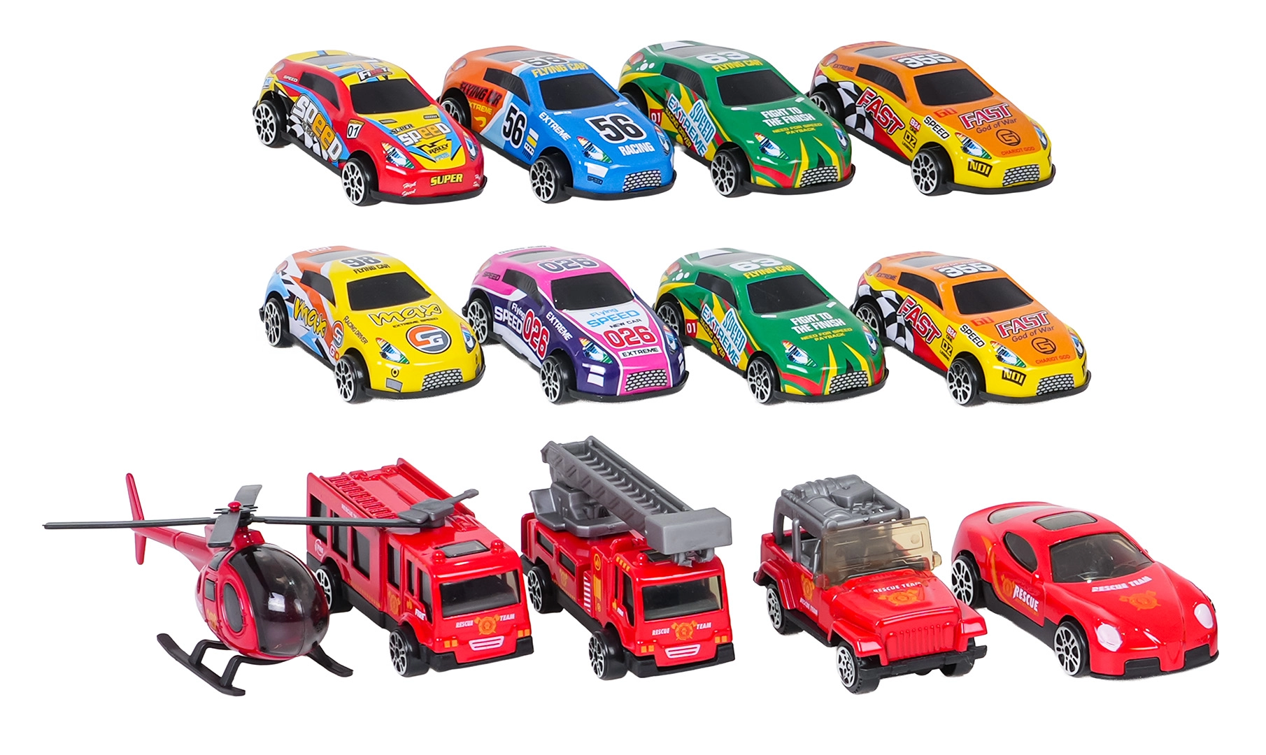 - Богато оборудване: 12 колички + хеликоптер, сигнализация и стикери