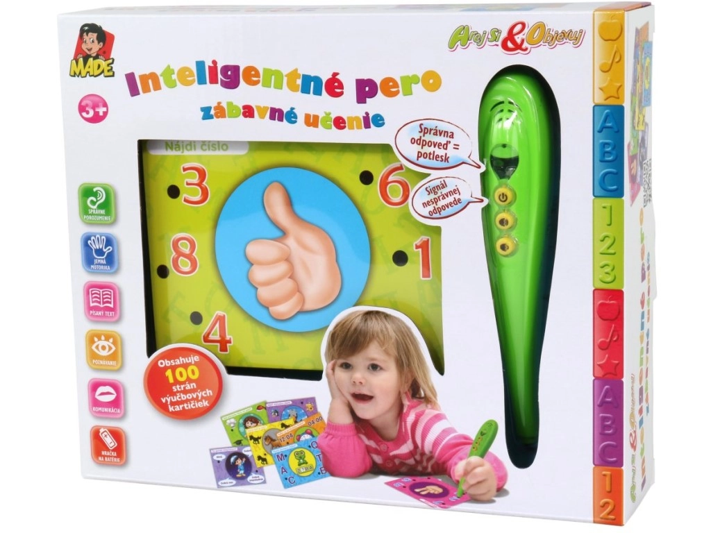 Умното перо с карти е идеален помощник за игрово обучение. Децата тренират логика, наблюдателност и знания, а мигновената светлинна обратна връзка ги мотивира да продължат да откриват. Благодарение на словашките въпроси и отговори комплектът е подходящ и за развитие на разбирането на чужд език при българските деца.