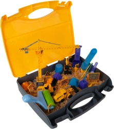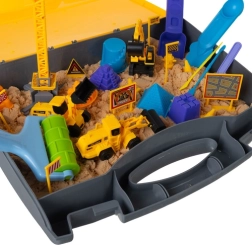 Практично преносимо решение: отворете куфарчето и получавате игрова табла с отделения за пясък, превозни средства и инструменти. Лесно съхранение и игра навсякъде.