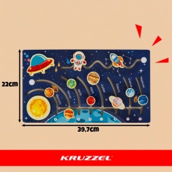 Тази образователна дървена играчка представя Слънчевата система на децата по забавен и разбираем начин. Благодарение на интерактивното движение на елементите децата тренират координацията око–ръка, развиват търпение и естествено усвояват знания за планетите. Естетичната изработка и приятното усещане от дървото я правят красив акцент в детската стая и отлична идея за подарък.