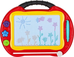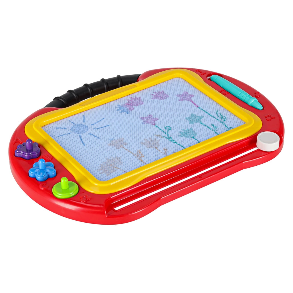 Магнитният екран показва четири цвята и с едно плъзване на плъзгача се почиства напълно. Идеален за безкрайно рисуване, писане и учене.