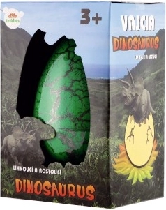 Това цветно макси яйце ще зарадва както момчета, така и момичета. В яйцето е скрита изненада под формата на динозавър. За да се излюпи динозавърът, е необходимо яйцето да се потопи в купичка с хладка вода. След приблизително 24 – 48 часа черупката ще се напука и динозавърът ще започне да се показва. Децата могат постепенно да наблюдават как динозавърът се излюпва от яйцето. Ще бъде ли това Ти-Рекс, стегозавър или брантозавър? Или някой съвсем различен динозавър? Това ще разберат след приблизително 72 часа.