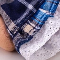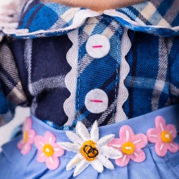 Нейното облекло е в елегантна цветова комбинация, а благодарение на наличието на допълнителни дрехи в подходящ размер гардеробът ѝ може непрекъснато да се разнообразява и персонализира.