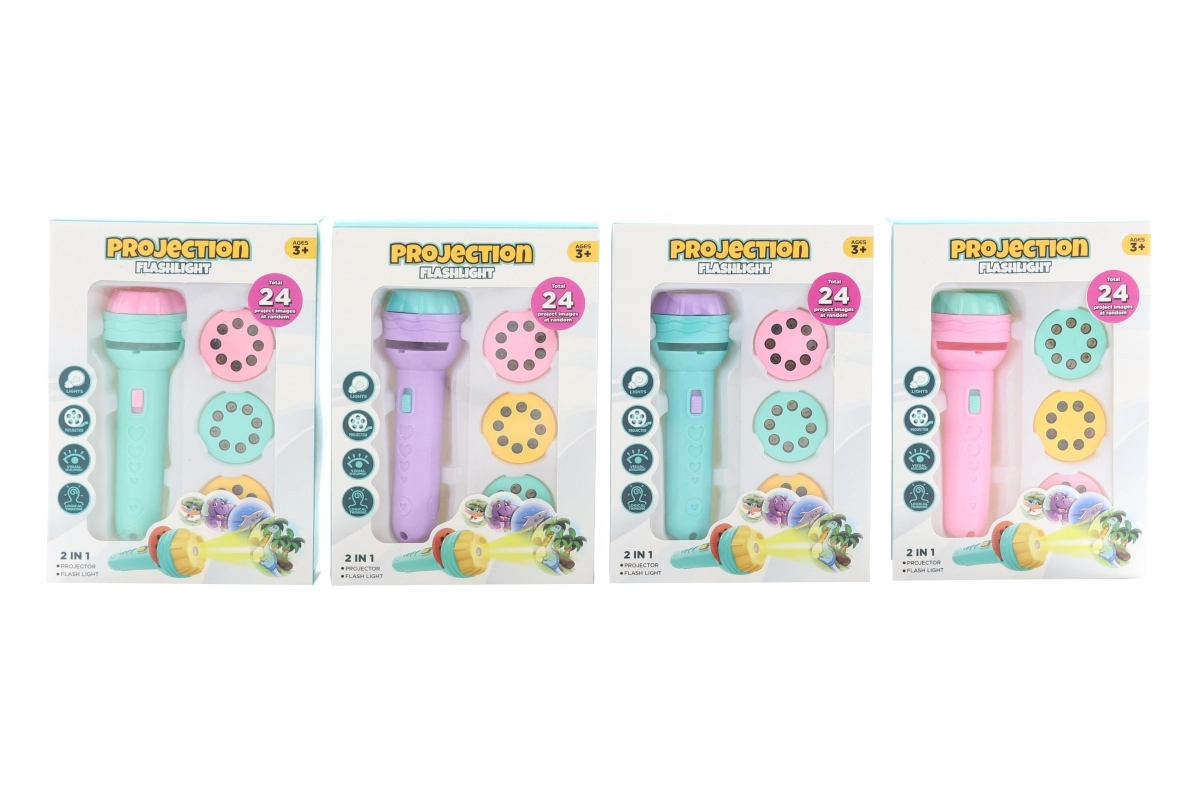 Открийте магията на прожектирането с този детски проектор/фенер 2-в-1, който предлага до 24 сладки изображения на животни. Компактният и лек пластмасов проектор е идеален за детски стаи, вечерни приказки и забавление по време на път. Подходящ за деца от 3 години.