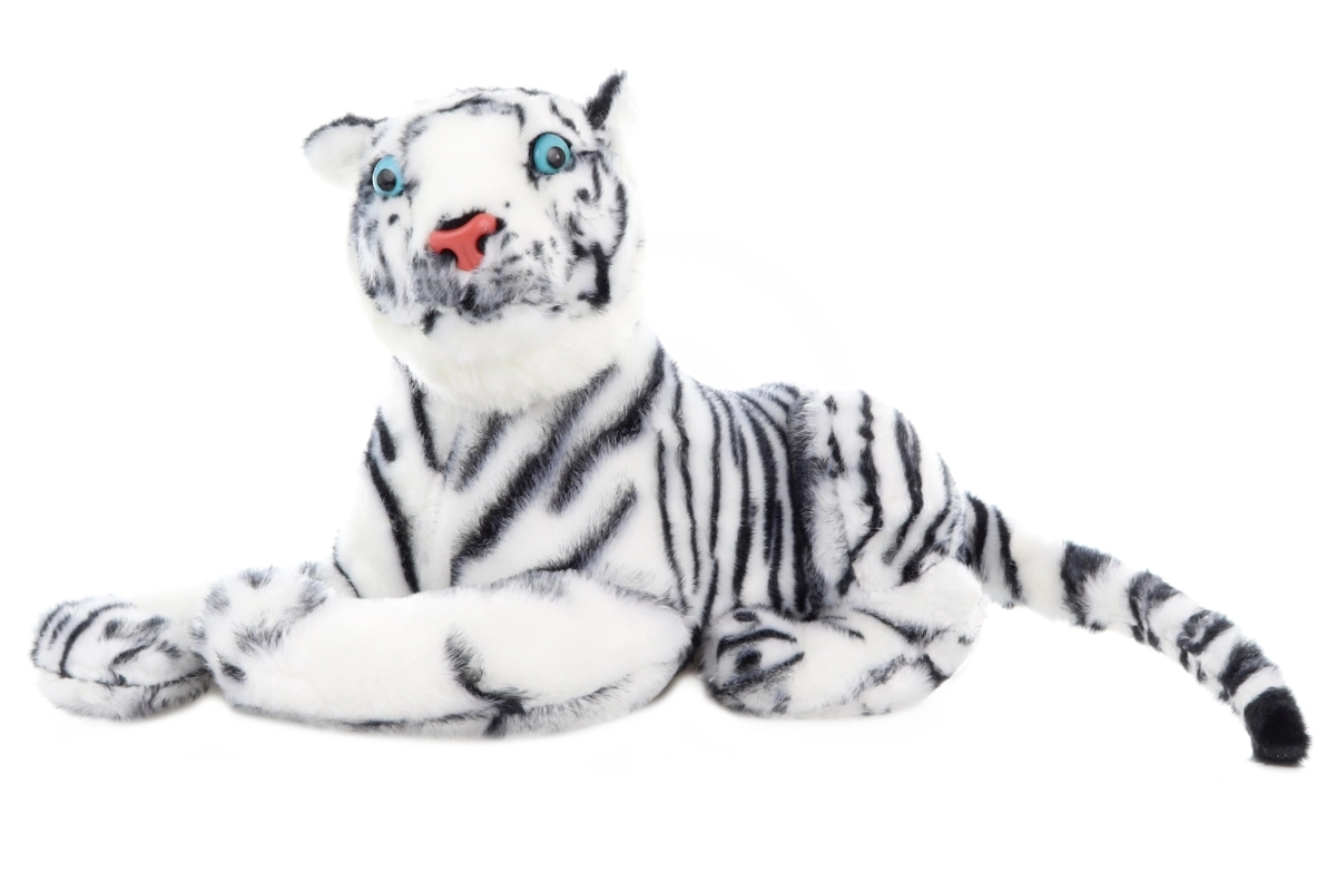 Открийте магията на белия тигър в плюшена форма. Този голям плюшен приятел с дължина 57 см е изработен от приятна, мека материя, която приканва към гушкане. Благодарение на неутралните цветове пасва на всяка детска стая и ще зарадва и деца, и родители.