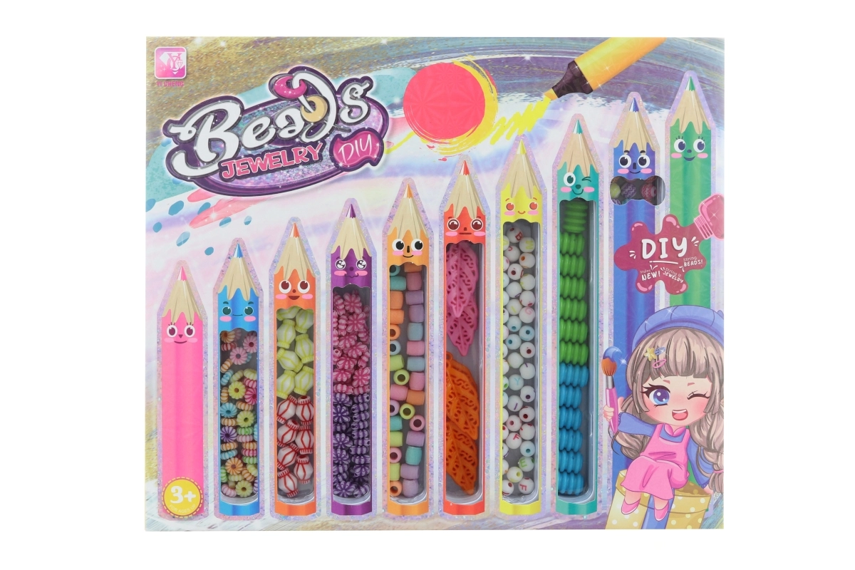 Подкрепете детското въображение и търпение с пъстроцветния комплект мъниста в оригинална опаковка във форма на пастели. Благодарение на разнообразните форми и размери децата лесно създават гердани, гривни или висулки и развиват фината моторика и креативността.