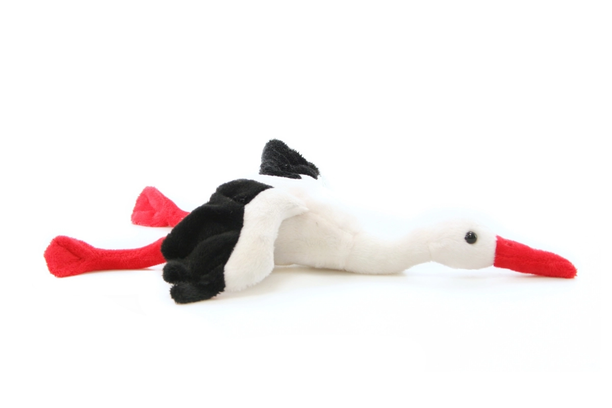 Този качествен плюшен щъркел впечатлява с реалистичния си вид и меката изработка. Дългите крака и характерният клюн стимулират детското въображение по време на игра и служат като приятен тактилен стимул. Благодарение на компактните размери е идеален за път, за количка и за леглото.