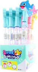 Забавен балонник с мотив на акула за деца от 3 години. Благодарение на пластмасовата изработка е лек и безопасен, има компактни размери и предлага много цветови варианти. Идеален за игра навън, в градината или на детски партита, където създава много блестящи балончета.