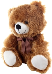 Кафявият плюшен мечок с панделка е вечна играчка, която ще зарадва всяко дете и възрастен. Благодарение на фината и качествена плюшена материя мечокът е приятен на допир и чудесен за успокояваща прегръдка. Седящият дизайн и милото изражение го правят красива декорация за детската стая и надежден спътник при пътуване.
