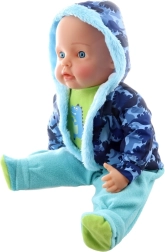 Куклата е подходяща за деца от 3 години и благодарение на качествената комбинация от материали (пластмаса + полиестер + пълнеж) издържа на ежедневна употреба. Тя е лека, безопасна и чудесно подхожда за ролеви игри, учене на грижа за бебе и развитие на емпатия.