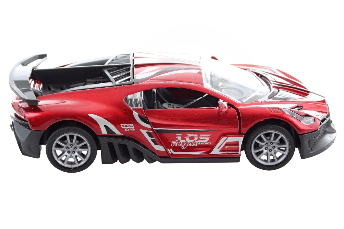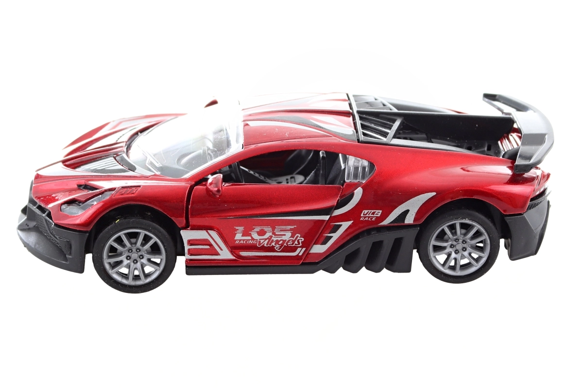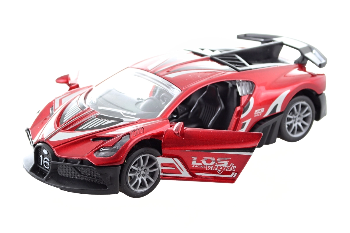 Този стилен метален автомобил предлага реалистично изживяване при шофиране благодарение на механизма за обратно задвижване – просто натегни, пусни и колата потегля напред. Отварящите се врати, прецизните детайли по каросерията и спортният дизайн със спойлер правят модела чудесно допълнение както за малки състезатели, така и за запалени колекционери.