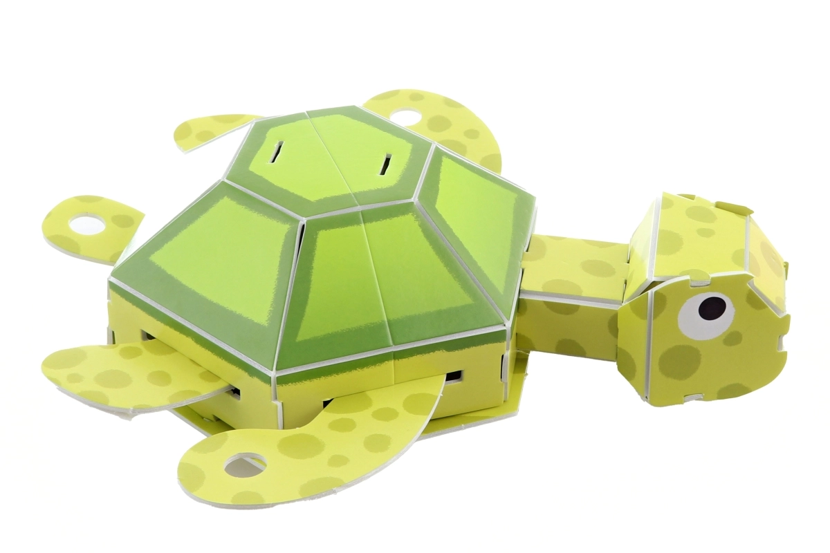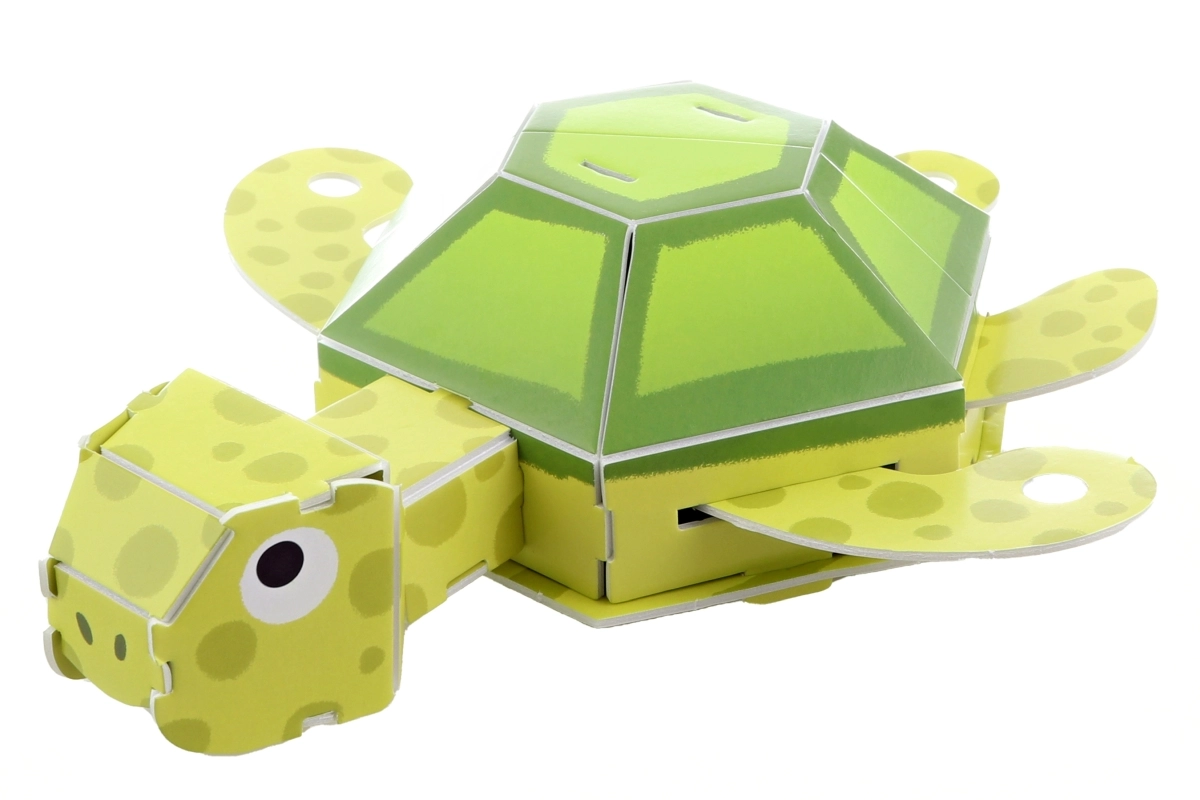 След сглобяване се получава очарователна костенурка, която ще краси детската стая и ще зарадва всеки малък строител.