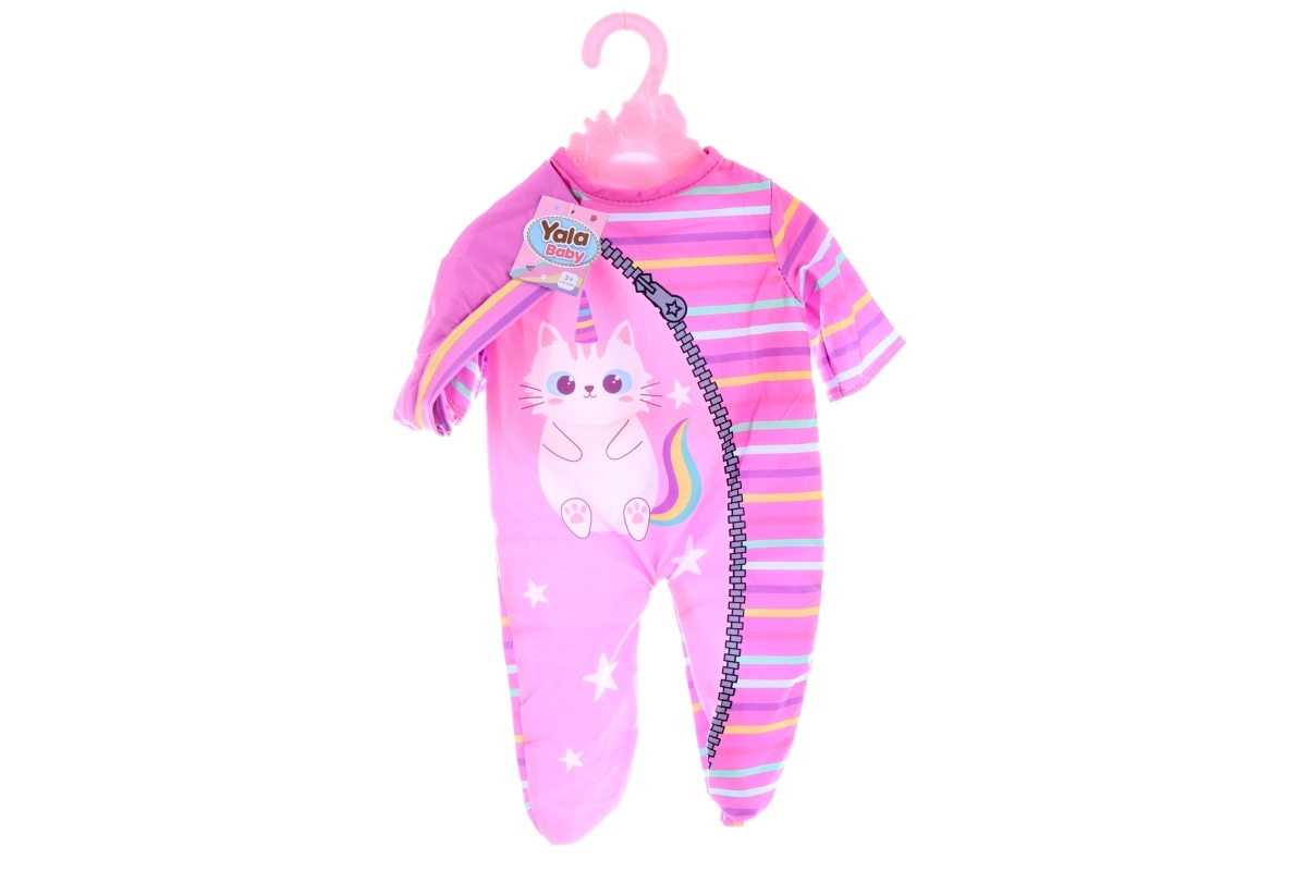 Сладък комплект дрешки за кукла с мотив котенце, включващ удобни ританки и съчетана шапчица. Идеален за кукли около 32 см, лесен за обличане и чудесен за детски игри и развитие на въображението. Мек материал, практична опаковка на закачалка и милият дизайн ще зарадват всяка малка майка.