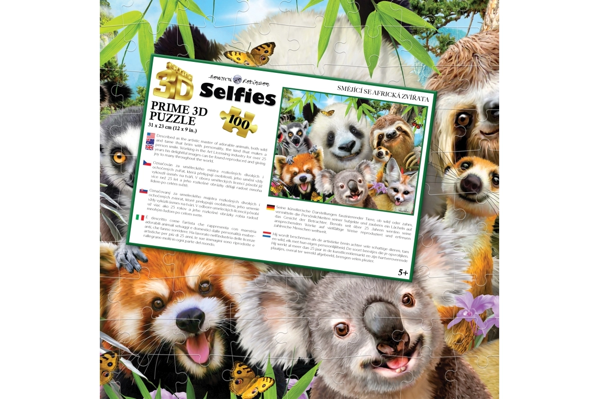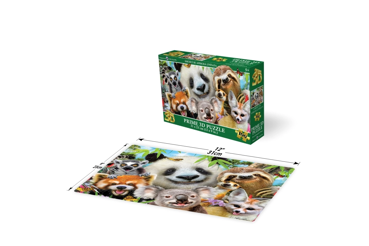 Открийте забавния 3D пъзел с усмихнати африкански животни, който развива въображението и фината моторика. Комплектът съдържа 100 части, готовото изображение е с размери 31 × 23 см и е идеален за деца от 5 години.