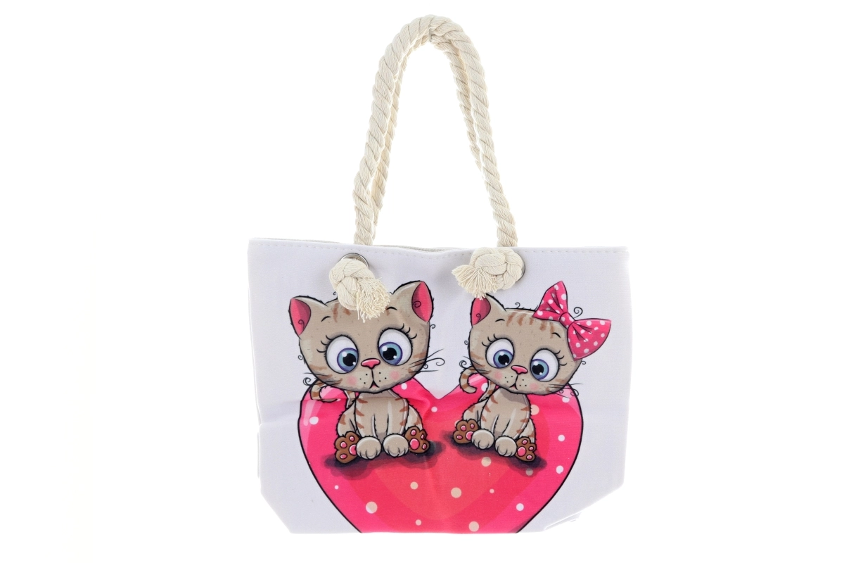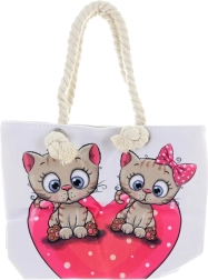 Стилна платнена чанта през рамо с очарователен мотив котенца, идеална за ежедневна употреба. Предлага практични размери 27 × 20 см, лека, компактна и лесно се комбинира с лежерна и градска визия. Страхотно решение за портфейл, ключове и дребни вещи.