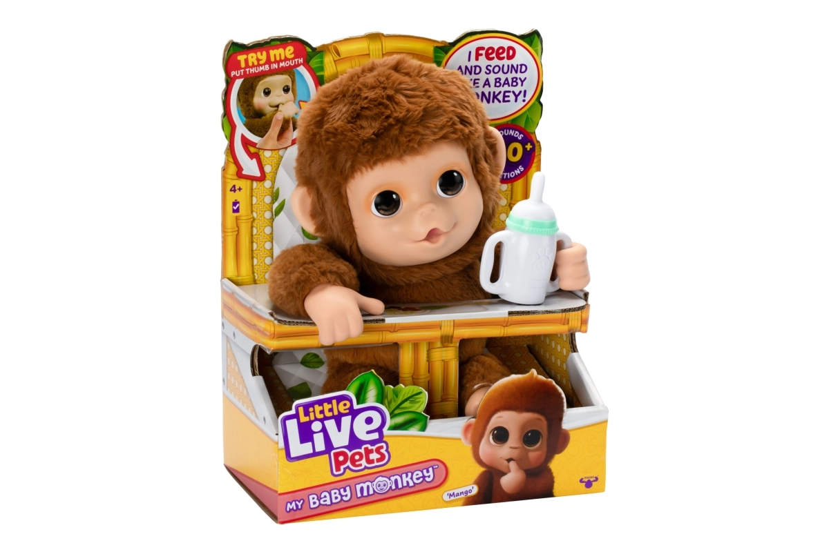 Открийте нов приятел за игра – интерактивната маймунка Mango от Little Live Pets. Тази сладка маймунка реагира на допир и движение, има над 50 звука и реакции, умее да се катери и виси с главата надолу, а реалистично движещото се личице придава магия на всяка игра. Тя е мека на допир, обича гушкане, можете да я храните с шишенце или да ѝ позволите да смуче палеца си – идеален приятел за креативна игра.