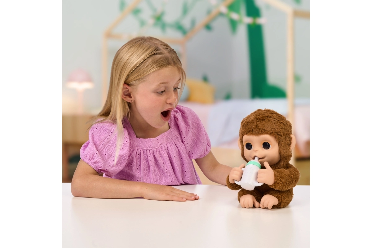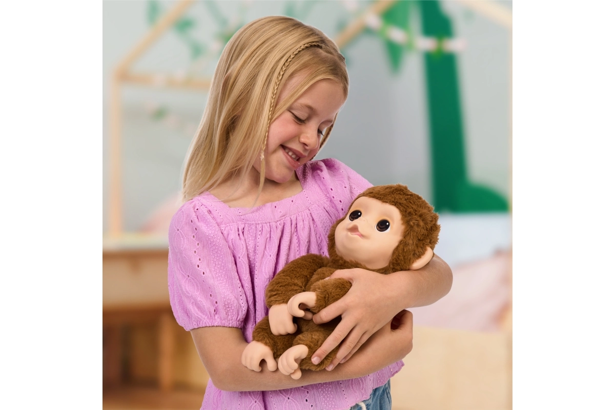 Запознайте се с Mango – екзотичната и забавна маймунка от колекцията Little Live Pets, която носи реалистични преживявания в детската стая. Mango реагира на галене и движение, смее се при гъделичкане и с над 50 звука и реакции се държи като истинска. Мекото плюшено телце приканва към гушкане, а изразителното личице и ръчички добавят емоции към играта.