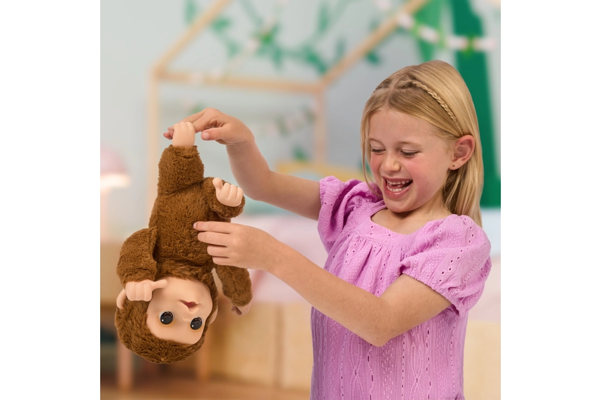Плюшеното телце и изразителното личице приканват към гушкане. Маймунката може да виси с главата надолу и да забавлява децата както в активна, така и в спокойна игра.