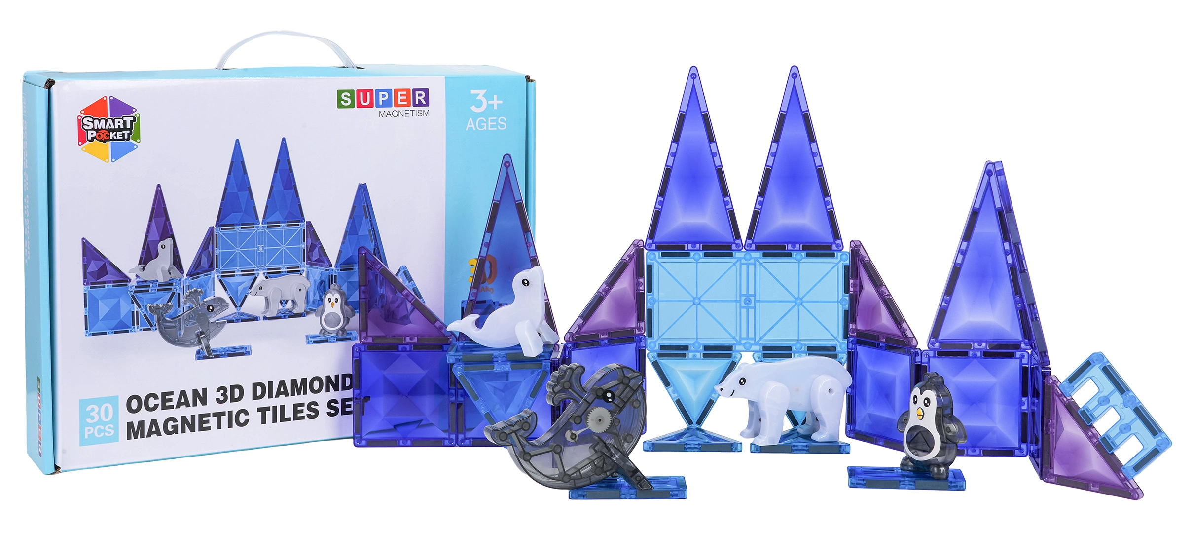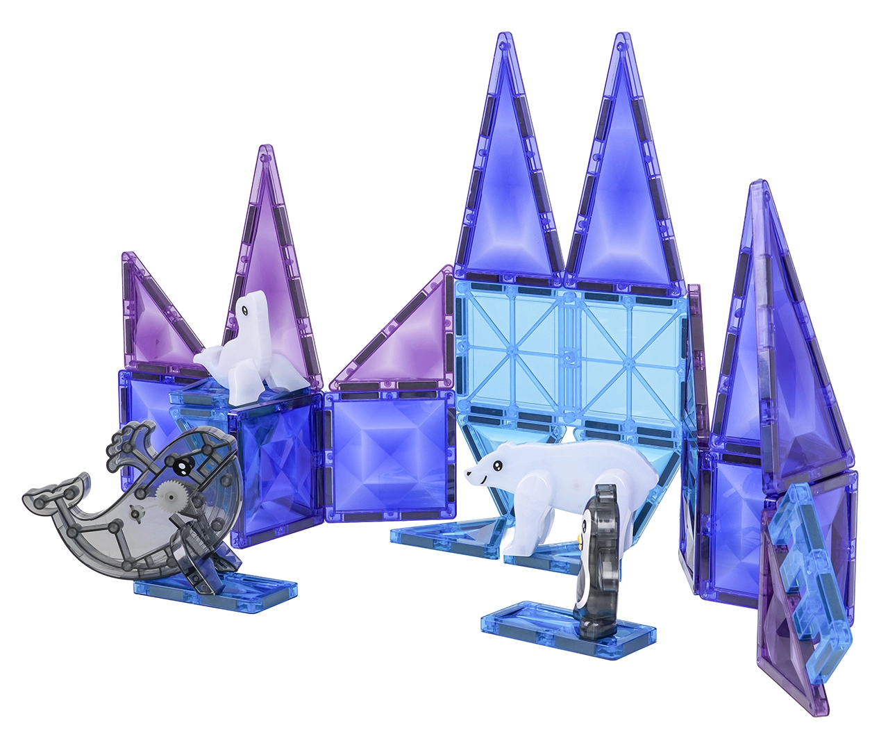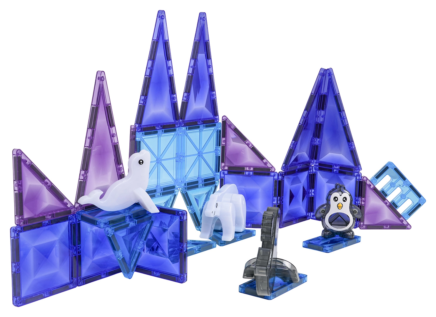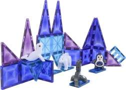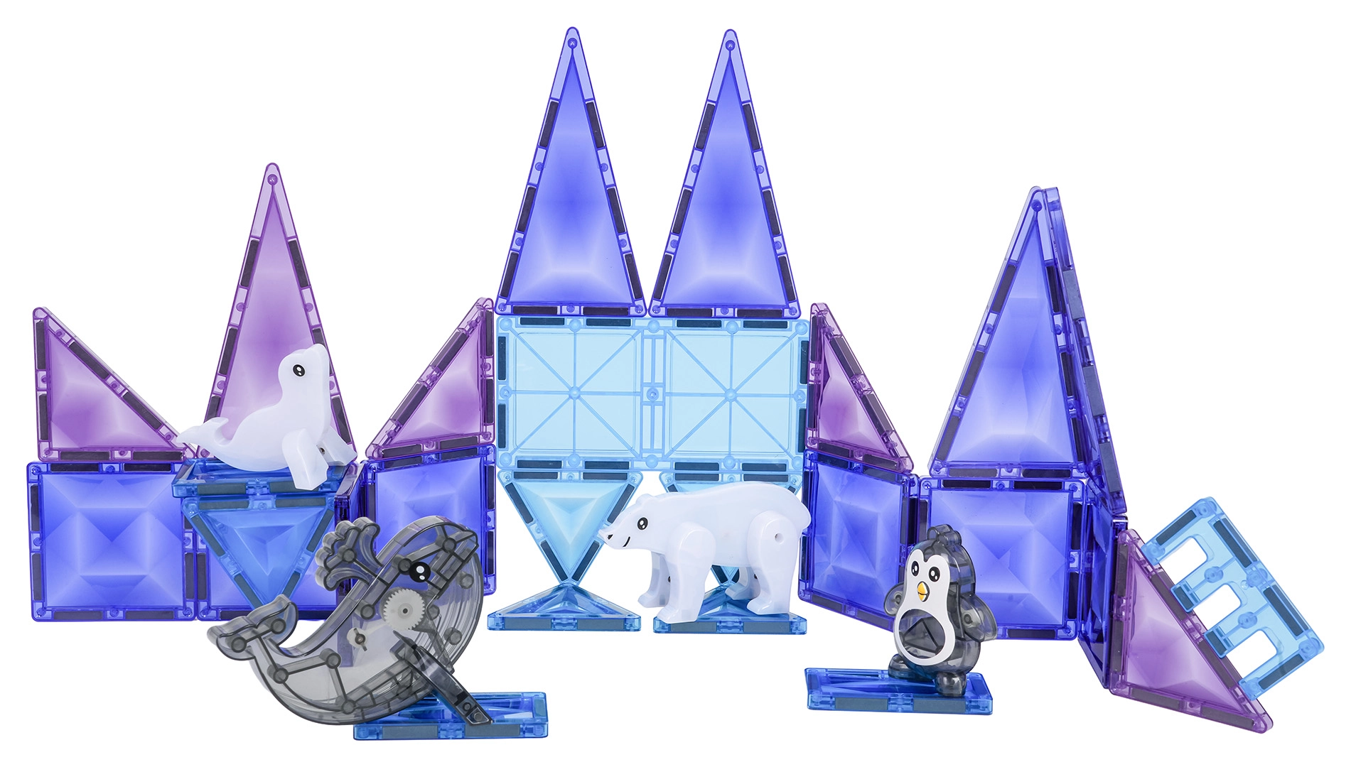 Магнитният конструктор Ice Snow е създаден за деца от 3 години. Полупрозрачните елементи в студени цветове се подреждат в кули, стени и ледени дворци, като магнитните връзки запазват формата и конструкциите са стабилни. В комплекта има и сладки фигурки – тюлен, пингвин, делфин и полярна мечка – които оживяват всяка игра.