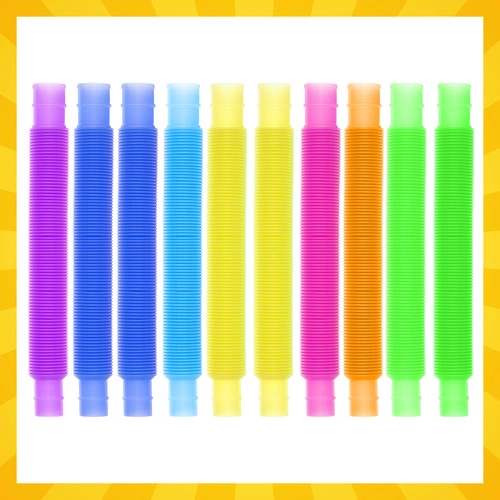 Комплектът от 10 сензорни тръбички предлага забавна стимулация за деца и възрастни. Благодарение на различното съпротивление при разтягане осигуряват богати сензорни стимули, подпомагат координацията око–ръка и концентрацията. При манипулация издават успокояващи поп звуци, които помагат за успокояване и съсредоточаване.