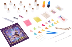 Открийте колко лесно и забавно е да създавате свои декоративни отвари! Този креативен комплект за деца съдържа мини стъклени шишенца с коркова тапа, блясъци, пигменти, сикуин декоративни елементи, висулки пеперуди и практични инструменти за прецизно дозиране. Децата тренират фината моторика, креативността и въображението, докато смесват цветове, пълнят и украсяват вълшебни еликсири.