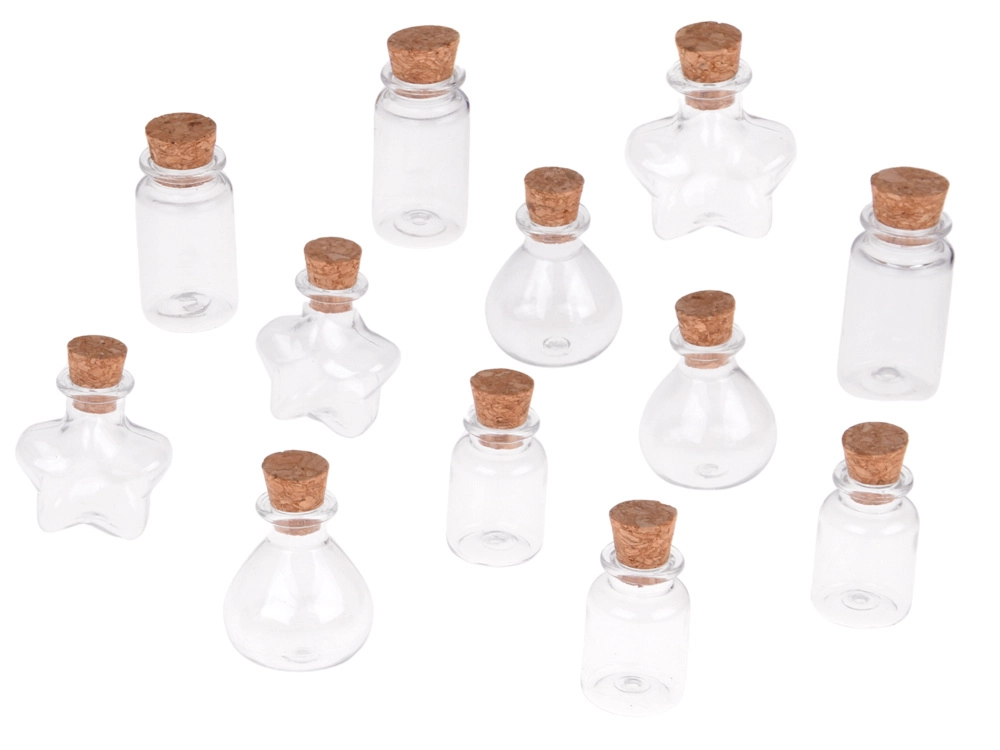 Прозрачно стъкло в различни форми (цилиндър, капка, звезда и др.) за красив ефект на отварите. Идеални за блясъци, мъниста и цветни течности.