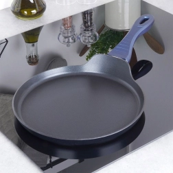 Дръжката с мек силиконов слой остава хладна и е удобна за захващане. Ниската периферия улеснява наливането на тестото, повдигането и обръщането на палачинките. Тиганът е без PFOA и PTFE, устойчив на почистващи препарати и благодарение на индукционното дъно е съвместим с всички видове готварски плотове.
