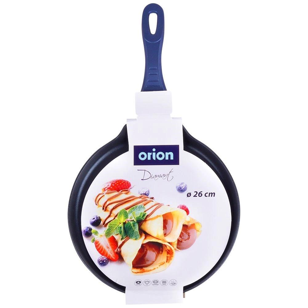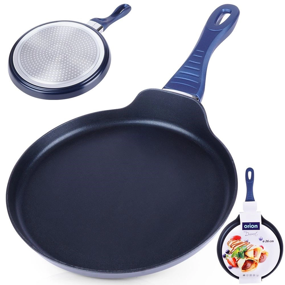 Открийте тиган за палачинки с диамантено незалепващо покритие с диаметър 26 см, изработен от здрав лят алуминий. Осигурява бързо и равномерно разпределение на топлината, без PFOA и PTFE, а благодарение на ергономичната дръжка с неплъзгащ се силикон е удобен за използване. Подходящ за всички видове котлони, включително индукционни, и може да се мие в съдомиялна.
