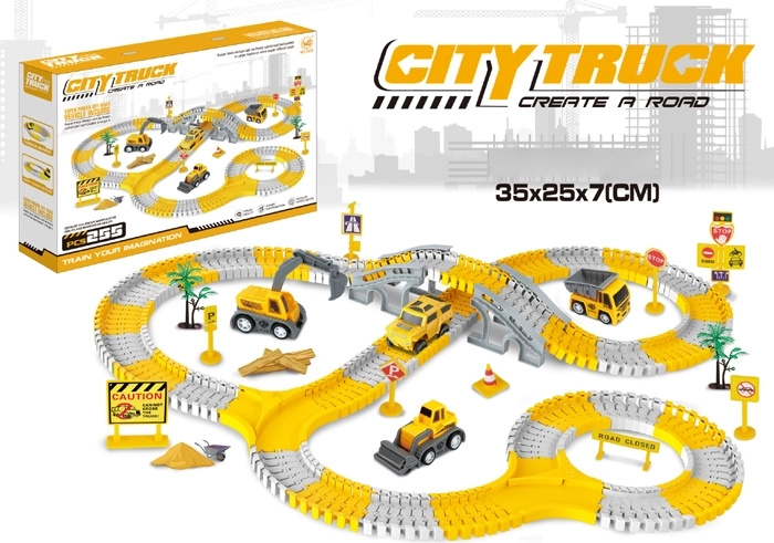 Създайте динамична писта с работни превозни средства и оставете въображението да работи на пълни обороти. Комплектът включва 255 елемента, които могат свободно да се комбинират в различни форми. Сегментните части на пистата се щракват лесно, така че деца и родители могат бързо да строят и пренареждат. Реалистичните строителни колички придават автентичност на играта.
