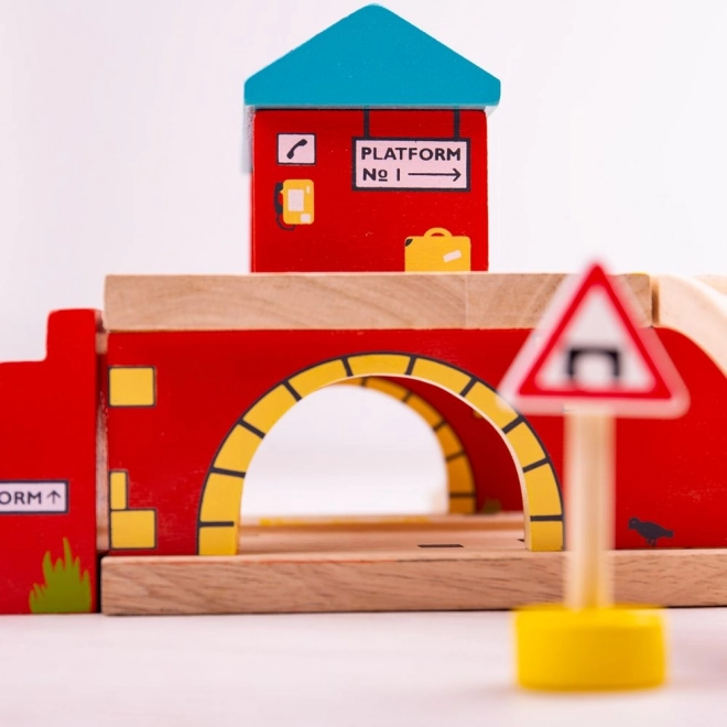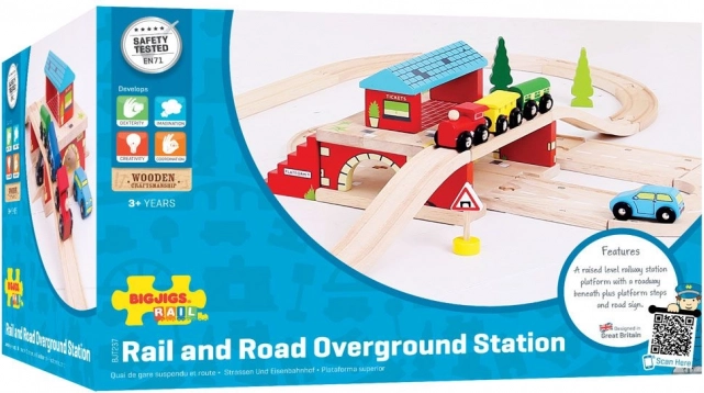 Тази пъстроцветна дървена играчка пресъздава емблематичните лондонски надземни станции. Съдържа разпознаваеми лондонски знаци, стоянка за таксита, каса и стълби към перона, което прави играчката чудесно допълнение към всеки дървен влаков комплект. Голямата гара над пътя позволява на участниците в пътното движение да минават под станцията, докато влакът пристига и заминава. Свързва железопътната линия и пътното платно, предоставяйки на децата безброй възможности за взаимодействие и игра.